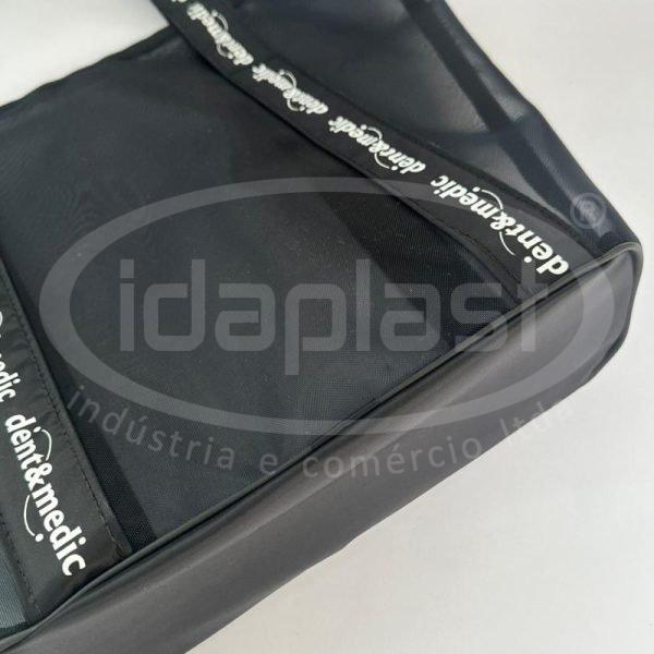 Sacola em tela especial (diversas cores para escolha) com alça personalizada. Base com vivo estrutural e forro. Monte a sua com seu consultor!
