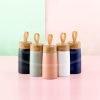 Garrafa inox com parede dupla, capacidade de 250ml. Contém tampa plástica com design de bambu e alça de silicone para transporte.